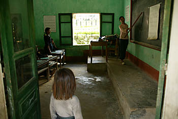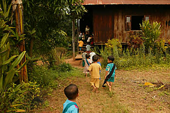 photo 1 : école sur le lac Inle - Myanmar / photo 2 : école dans les tribus Karen proches de Kalaw - Myanmar