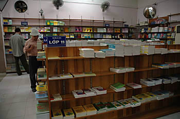 photo 1 : librairie à Hanoï pour les fournitures - Vietnam / photo 2 : distribution à l'orphelinat - Ninh Binh - Vietnam